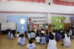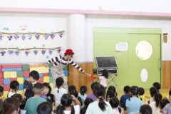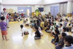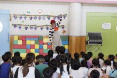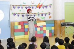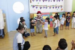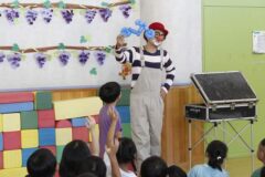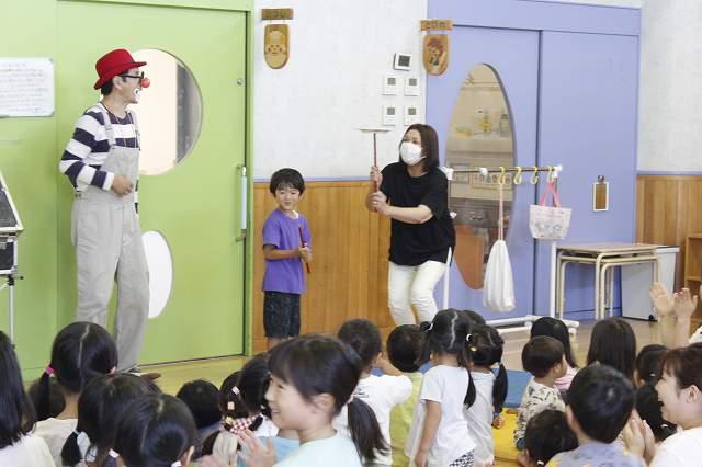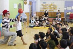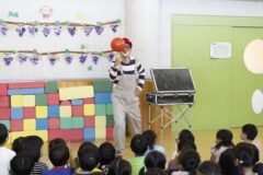 とってもおもしろいピエロさんで、子どもたちは笑いの絶えない時間でした。
