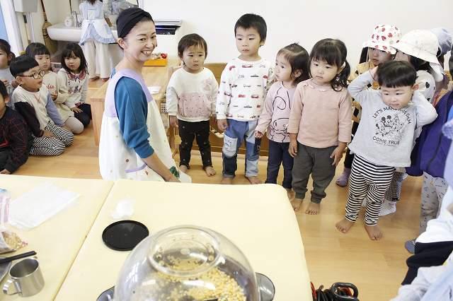 今日はきりん組初めてのクッキング “ポップコーン作り” でした。