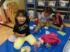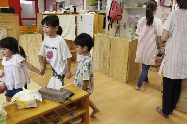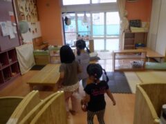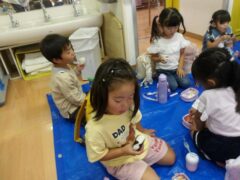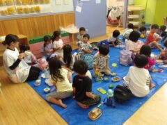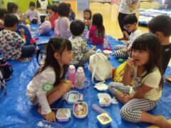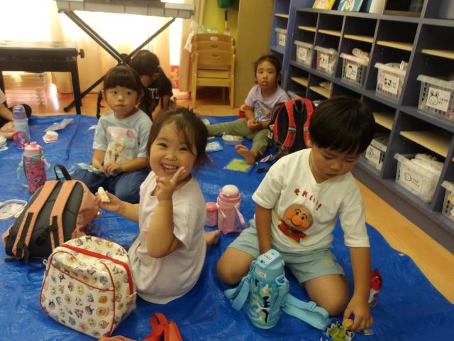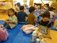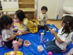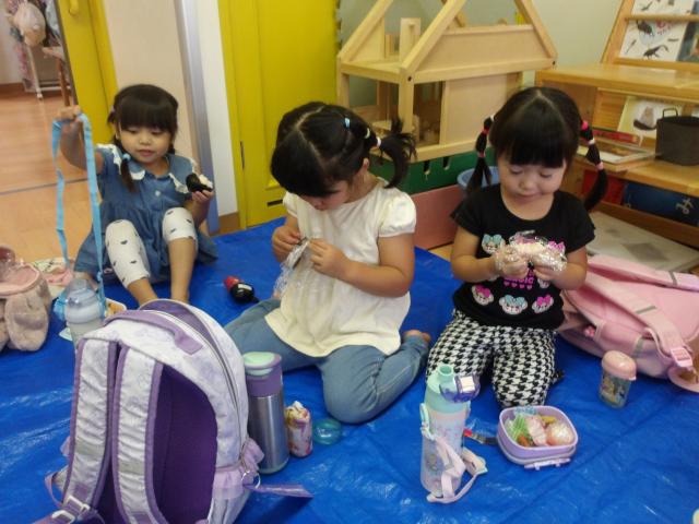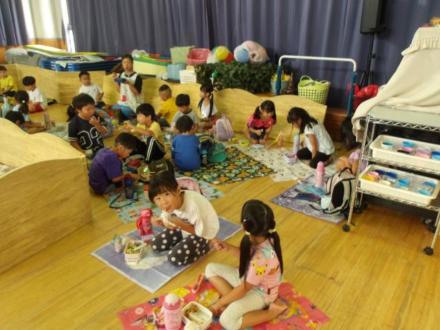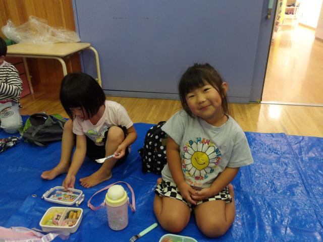 うさぎ組は保育室、ひつじ組ときりん組はホールで食べました。