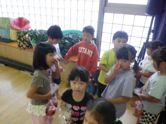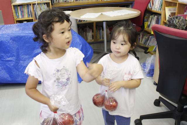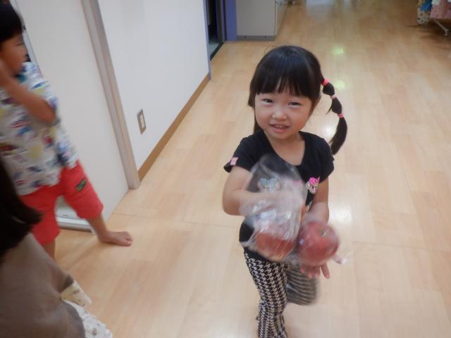 その後お楽しみの、名付けて「りんご探し大会」を行いました。