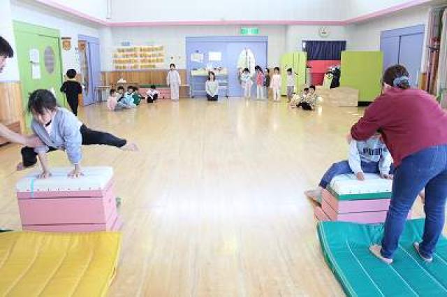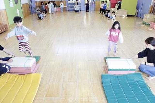 2026/01/28 令和8年1月28日(水) 本日の様子 こんにちは。本日の様子をお伝えします。 今日はひつじ・きりん組は体育指導がありました。 月に一度のお楽しみで、今回は“跳び箱”でした。 まずはひつじ組 ひつじ組は最後に4段に挑戦しました。 次はきりん組 きりん組は最後8段に挑戦した子もいます。 次回も跳び箱ですので楽しみですね。 次はたまご・ひよこ・りす組の雪遊びです。 今日は天気が良く光が反射してしまい、反省です。撮影の腕をあげたいと思っています。