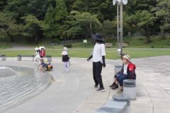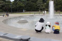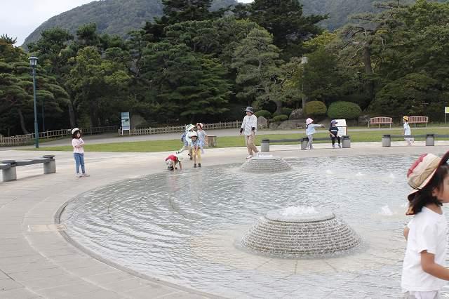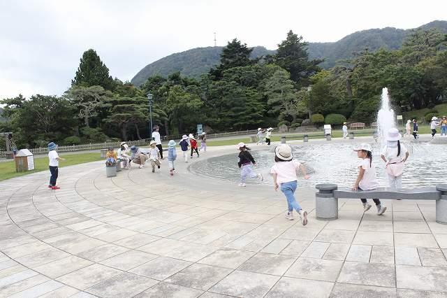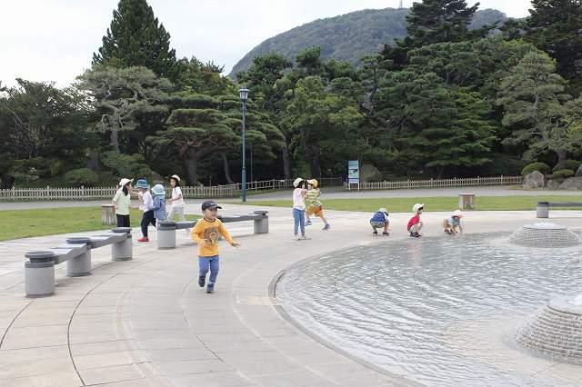 噴水の水を触ったりしていました。それくらい気持ちいい気温です。