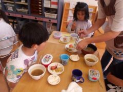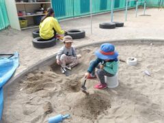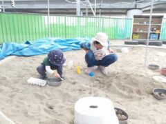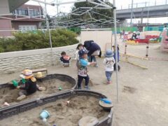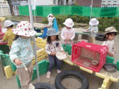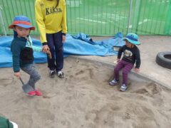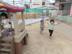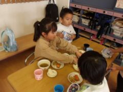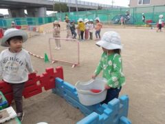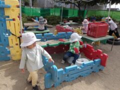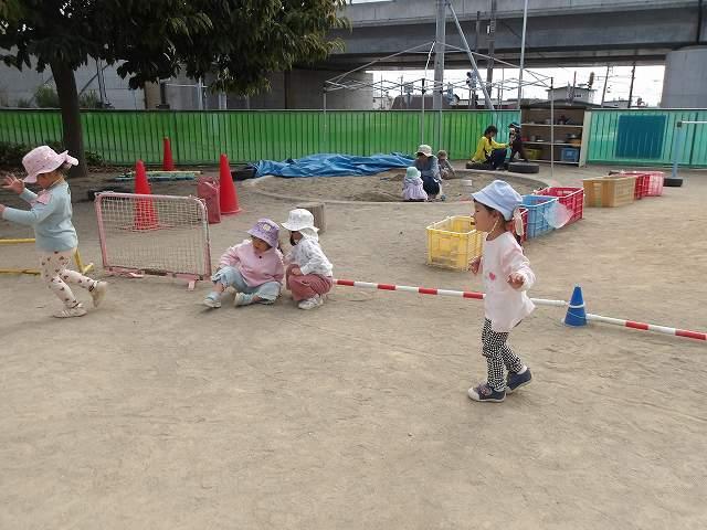 この日のたまごさんは二手に分かれて遊んでいました。