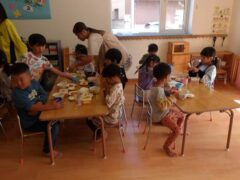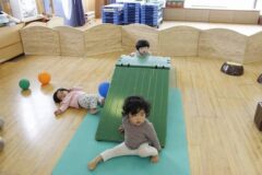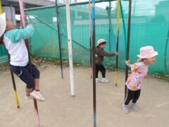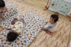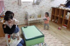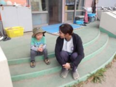 (学生さんにべったりの子どもたちをお見せしたかったのですが、写真を載せられないので後ろ姿の写真だけあります)