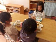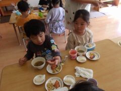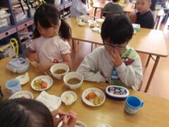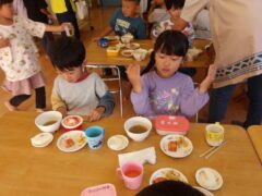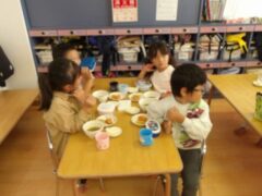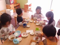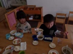 きりんさんとひつじさんはお散歩に行っていて写真がなかったので久々に食事タイムシリーズで。
