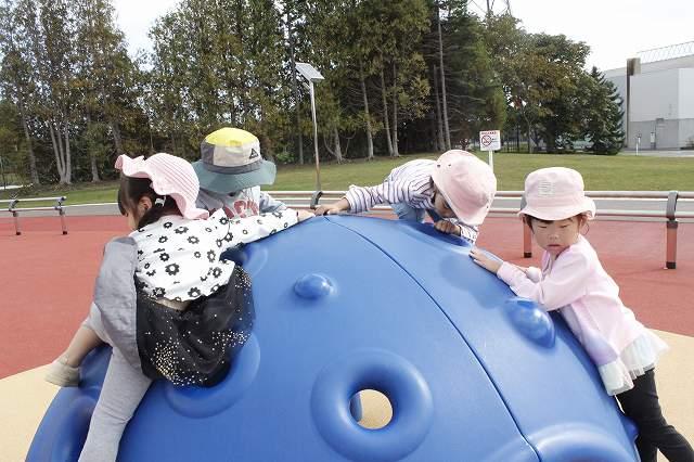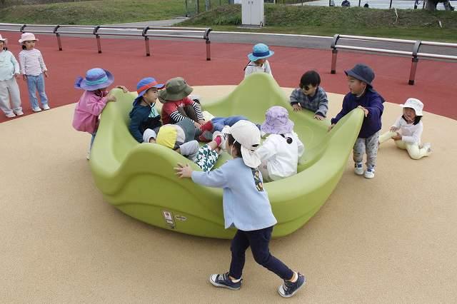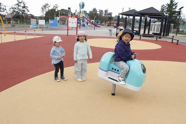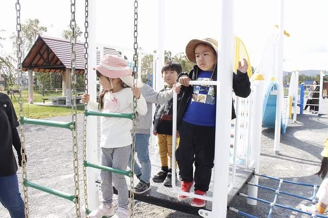 「この公園きたことある~」や「おっきい~、はやくあそびたい」などなど、目の輝きがいつもに増して輝く子どもたち!