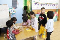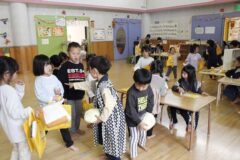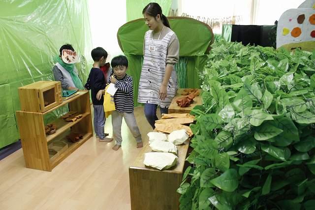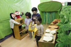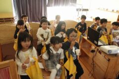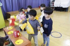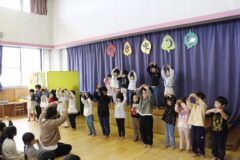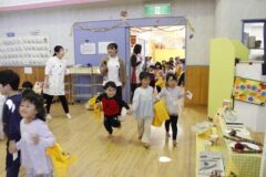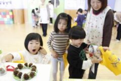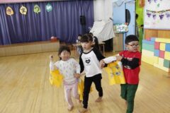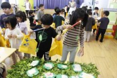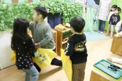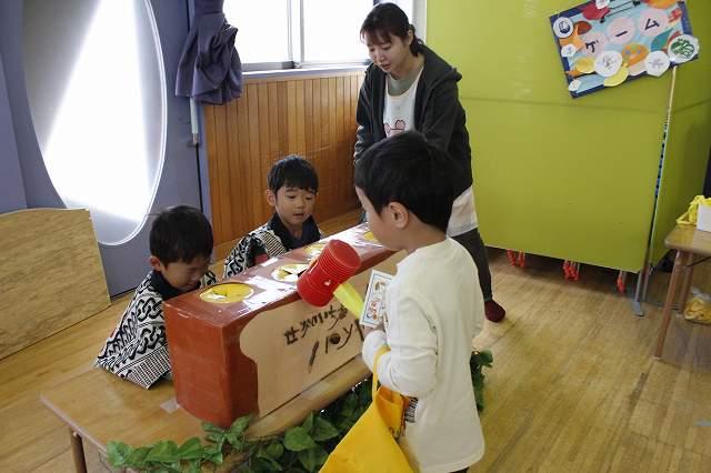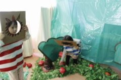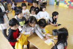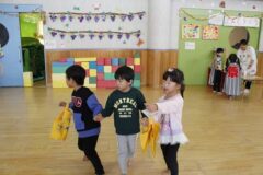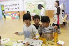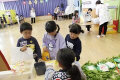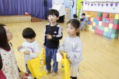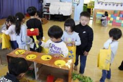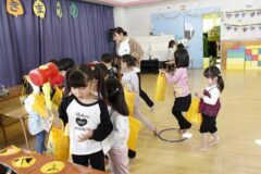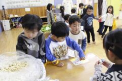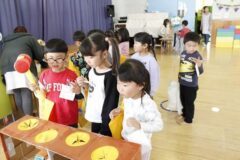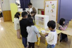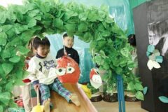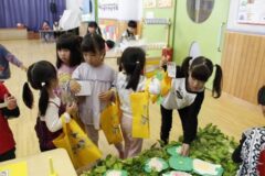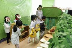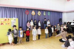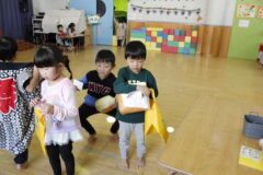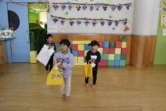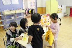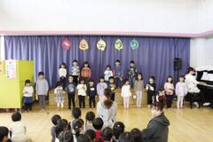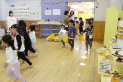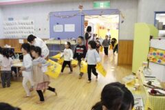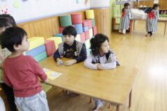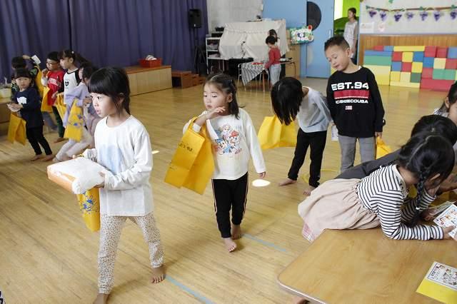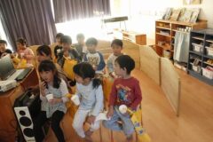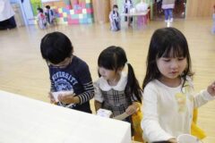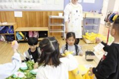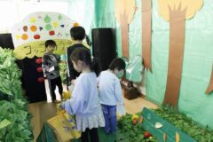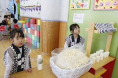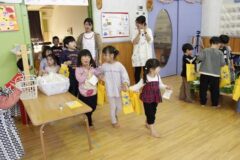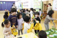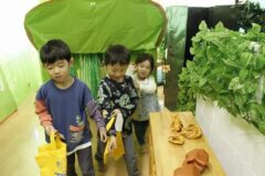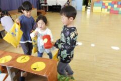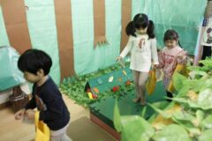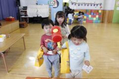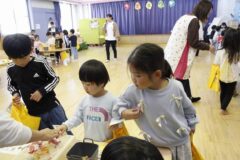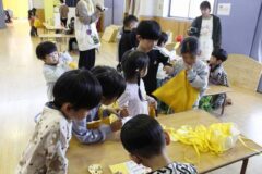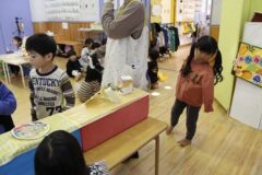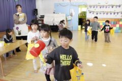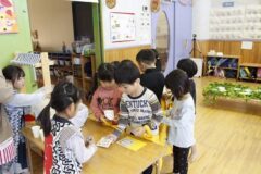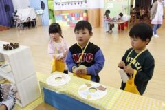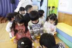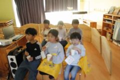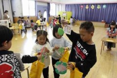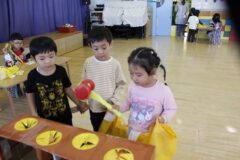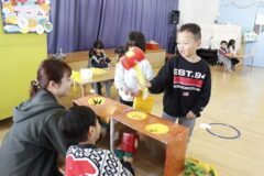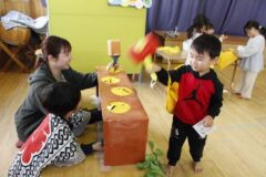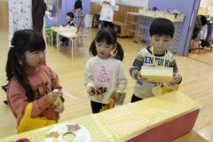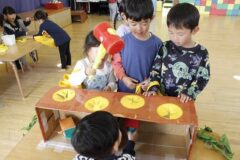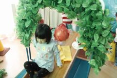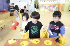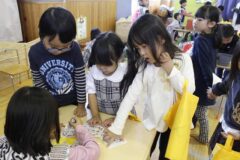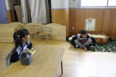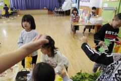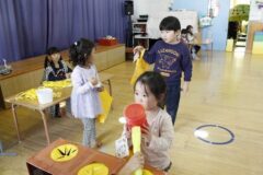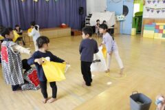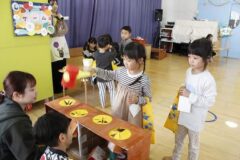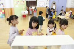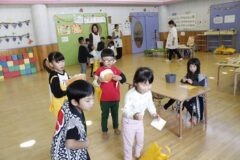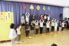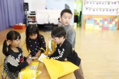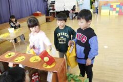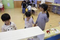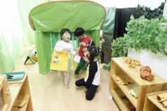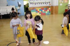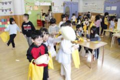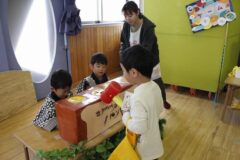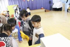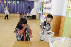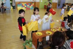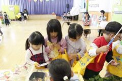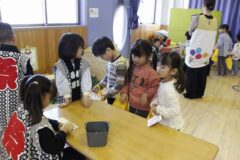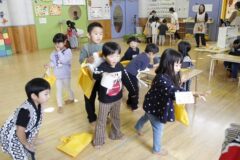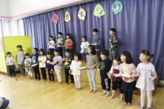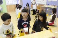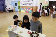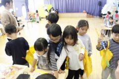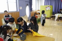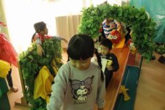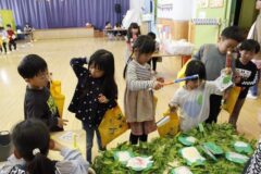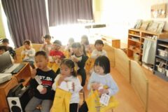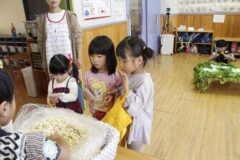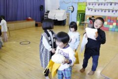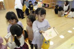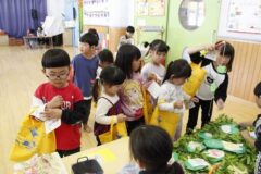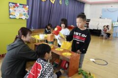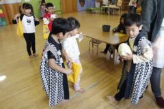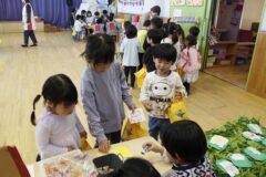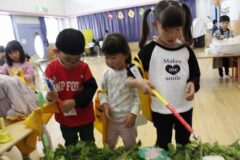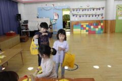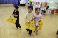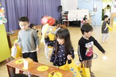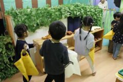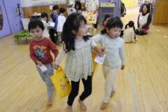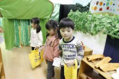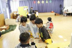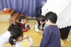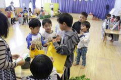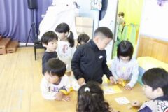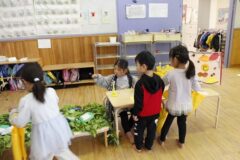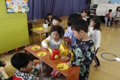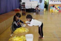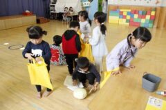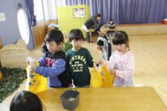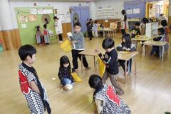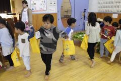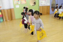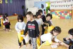 異年齢の活動です。一年間、同じメンバーで過ごすことで、愛着や敬ったり尊敬する気持ちを育ってくれたらと願っています。