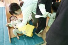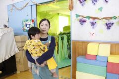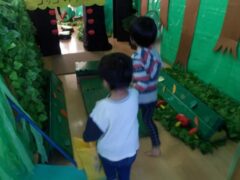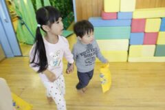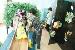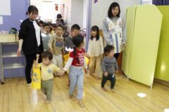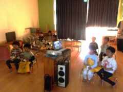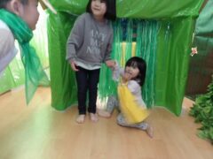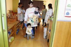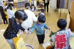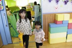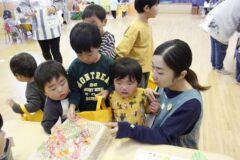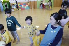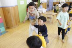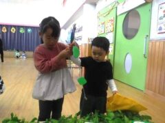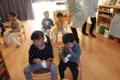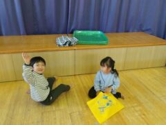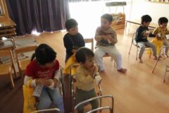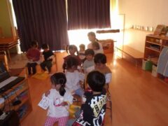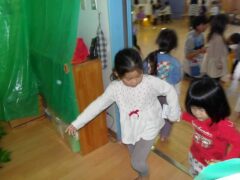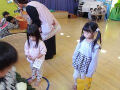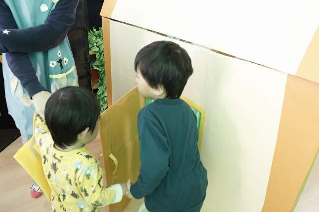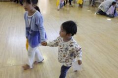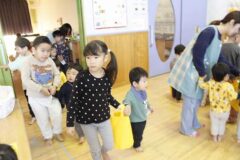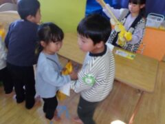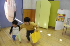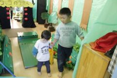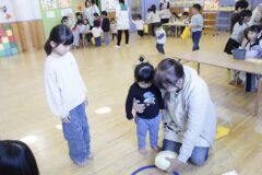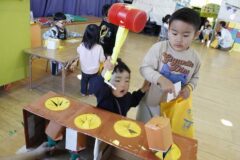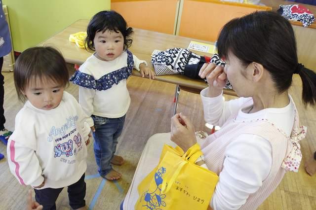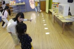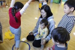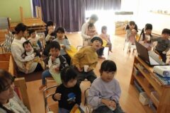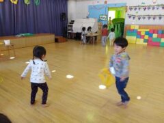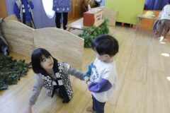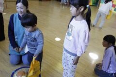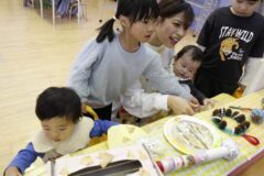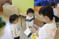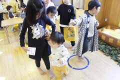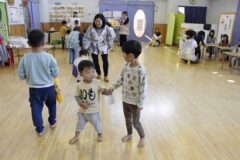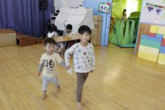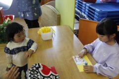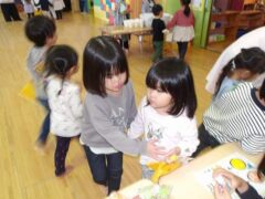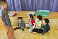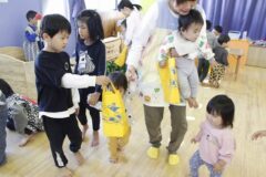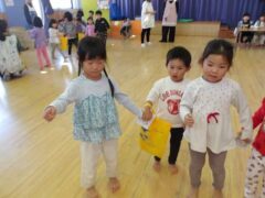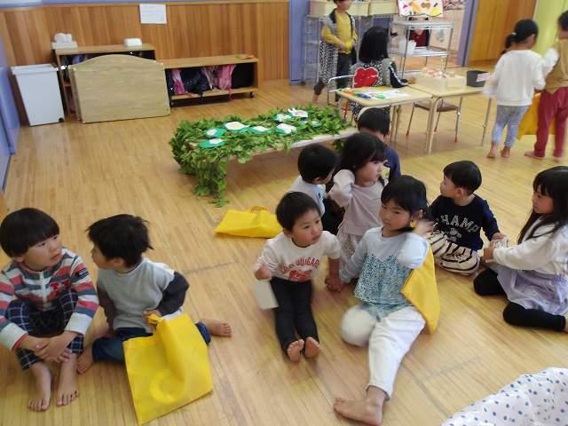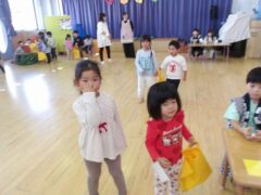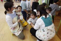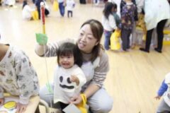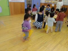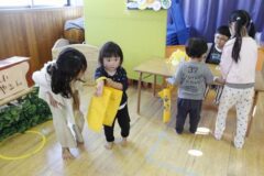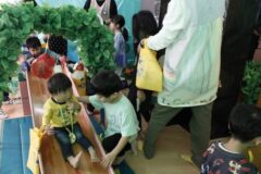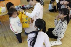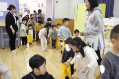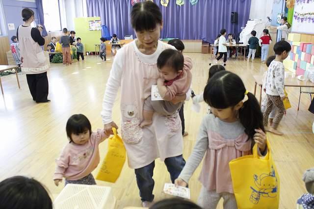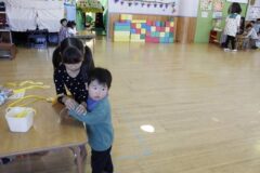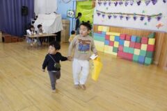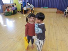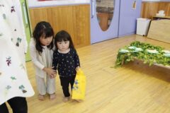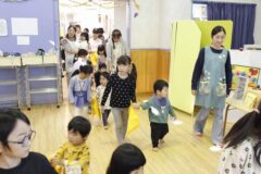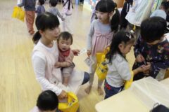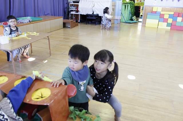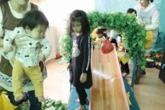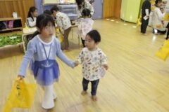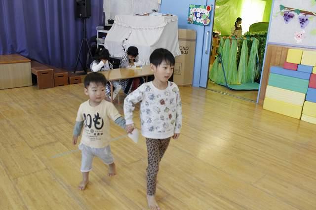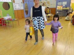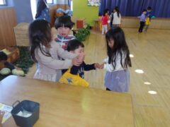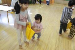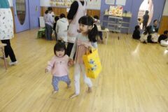 きりんとひつじさん、小さいクラスのお友だちに振り回されながら、最後までとても優しく接していました。
