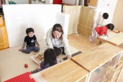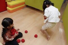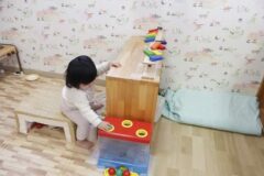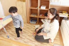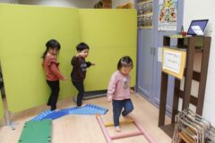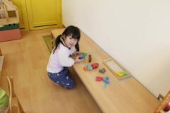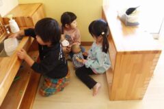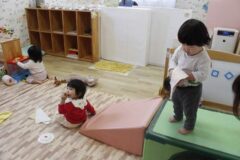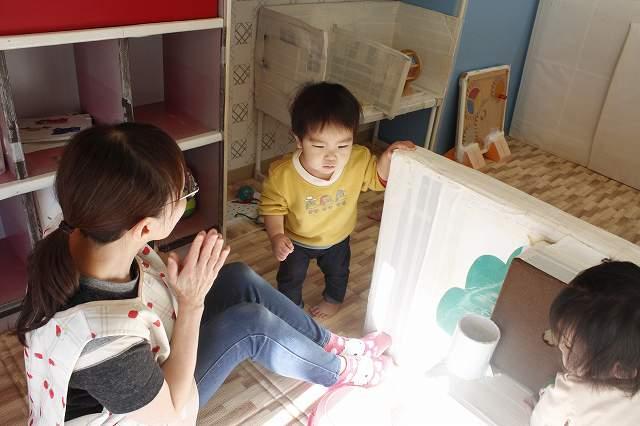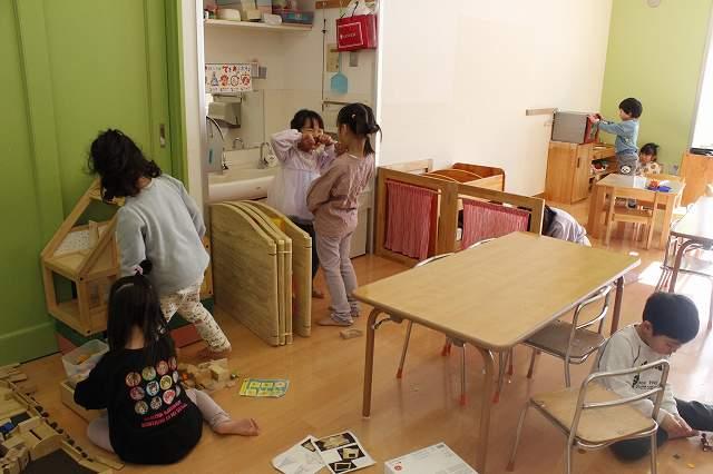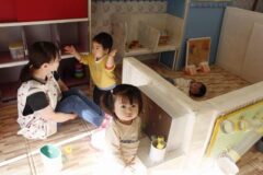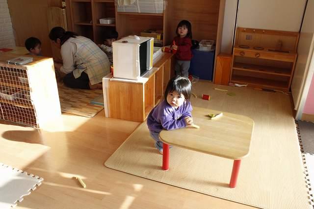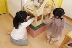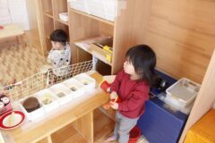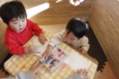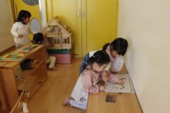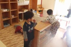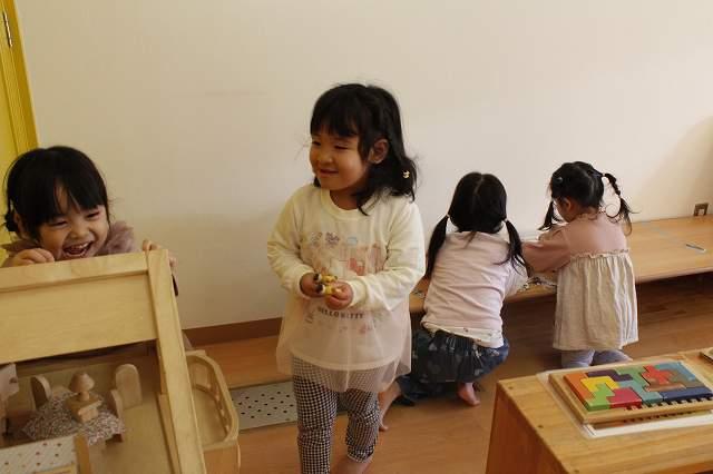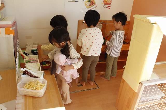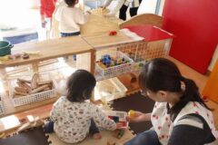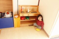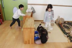 ひよこさんとりすさんはお部屋と廊下を使って遊んでいました。