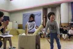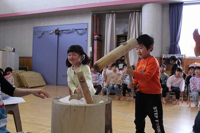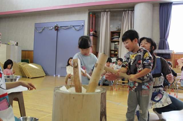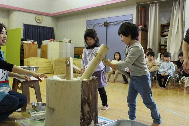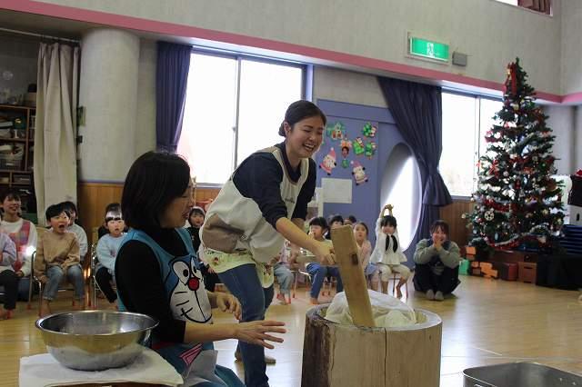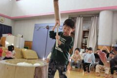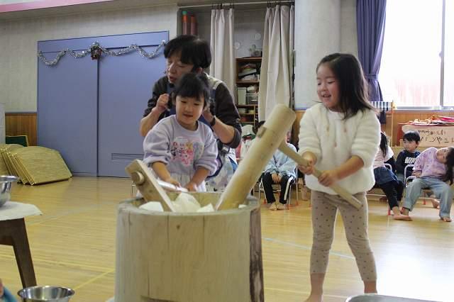 と言う訳で、子どもも先生も張り切っているお餅つき。
