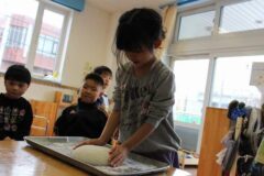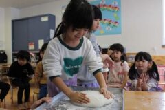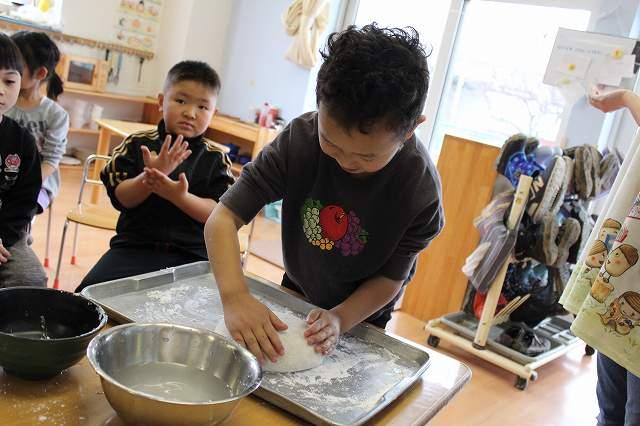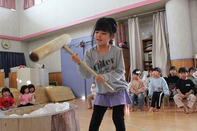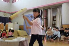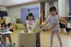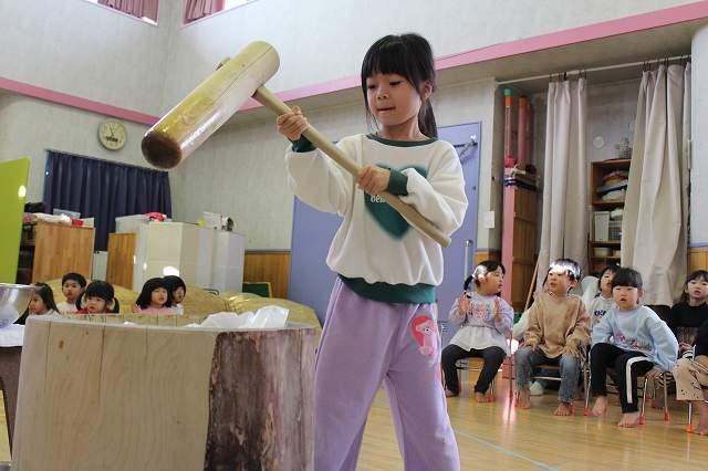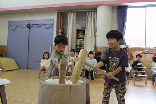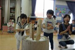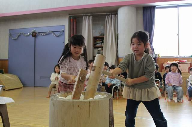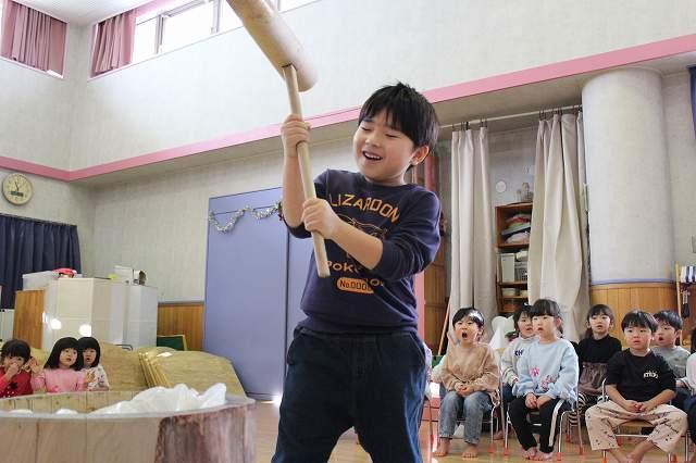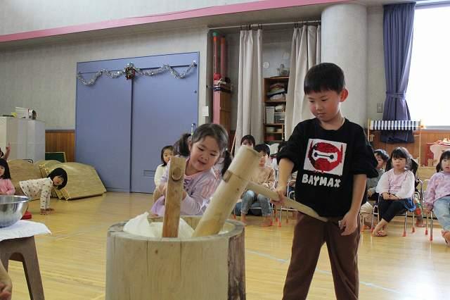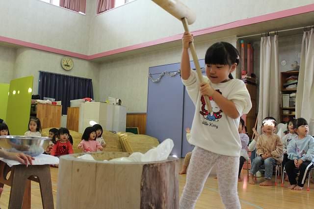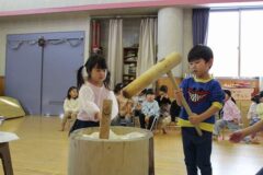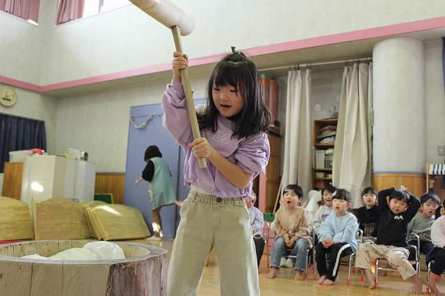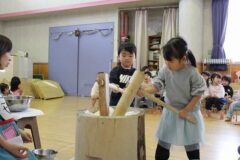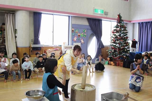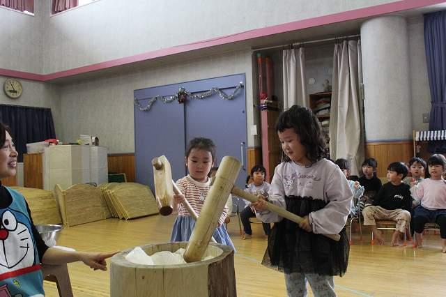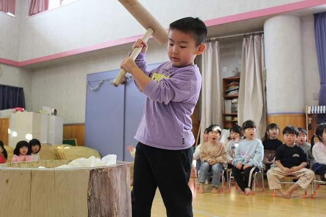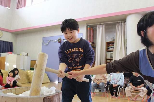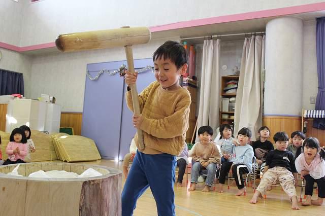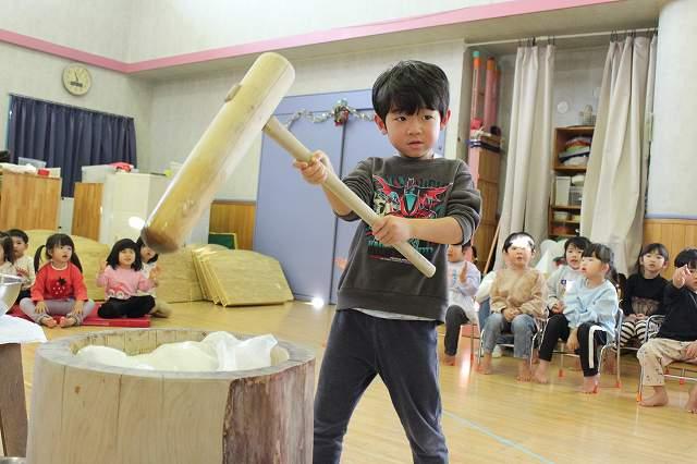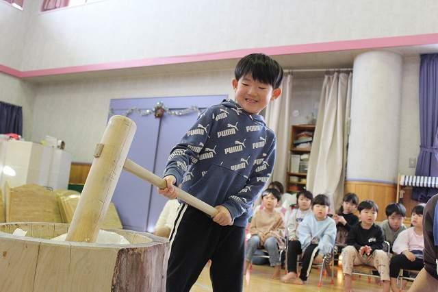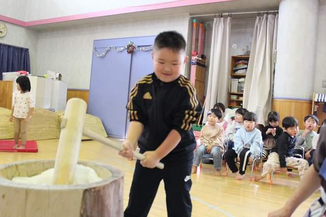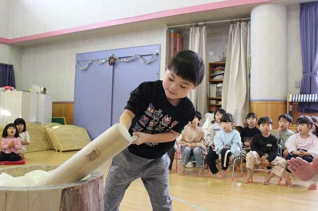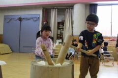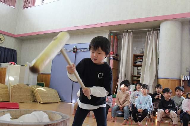 近年のどつまりの心配があり、園内でお餅を食べることは出来なくなりましたが、「餅をつく」伝統行事を大切に考え、お正月用の「鏡餅」を作るための餅つきを行いました!
