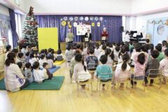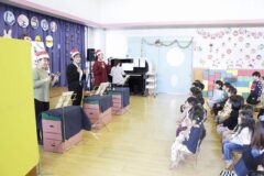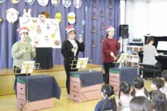 出し物はクリスマスにちなんだパネルシアターと職員の合奏です。