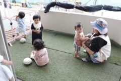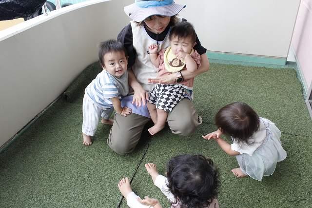 順番に製作をしているようで、製作をしないお友だちはベランダなどでくつろいでおります。