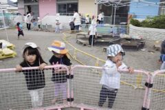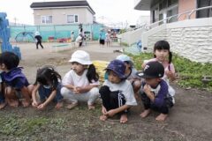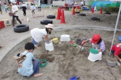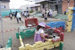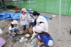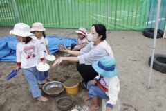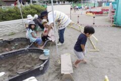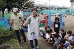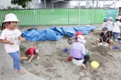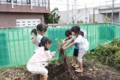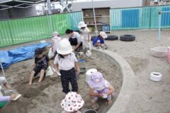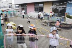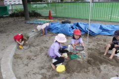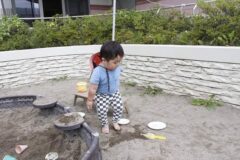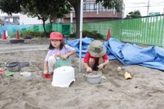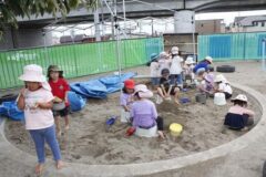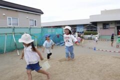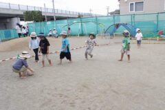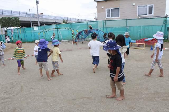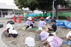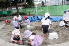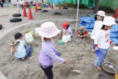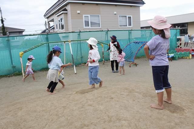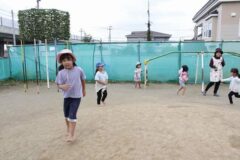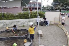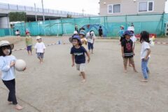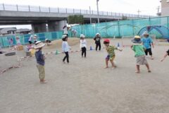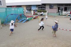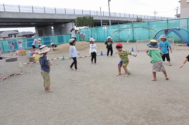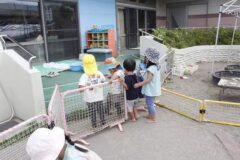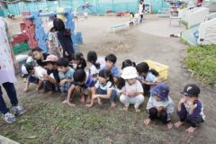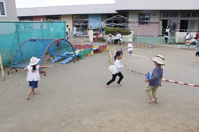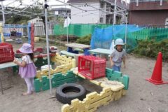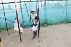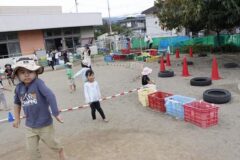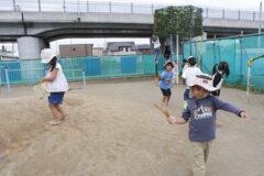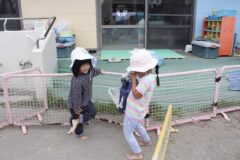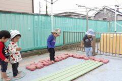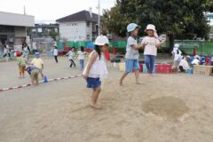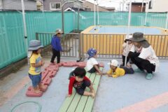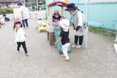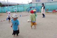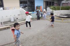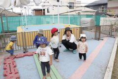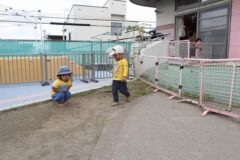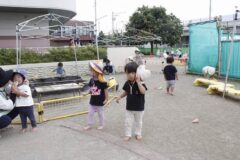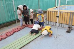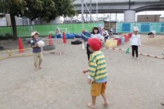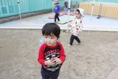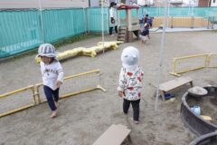 ひよこさんは園庭で遊んでいました。(一部のりすさんも混じっています)