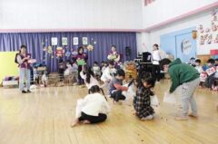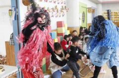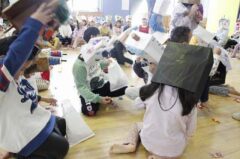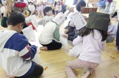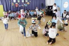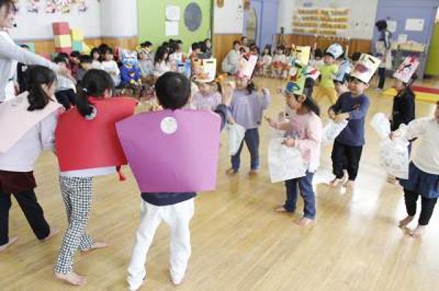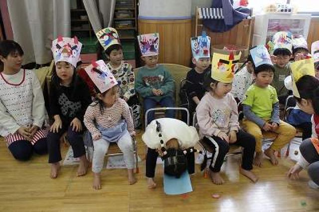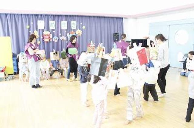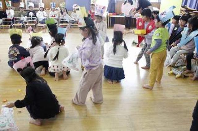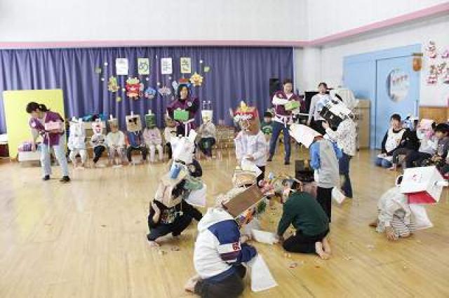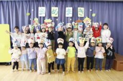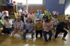 集合写真(順不同)は自分たちで作ったお面を持っています。個性的で可愛いでしょ。