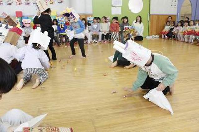 が、すぐに気を取り直して楽しみにしていた豆まきです。