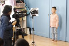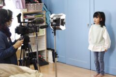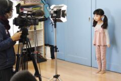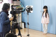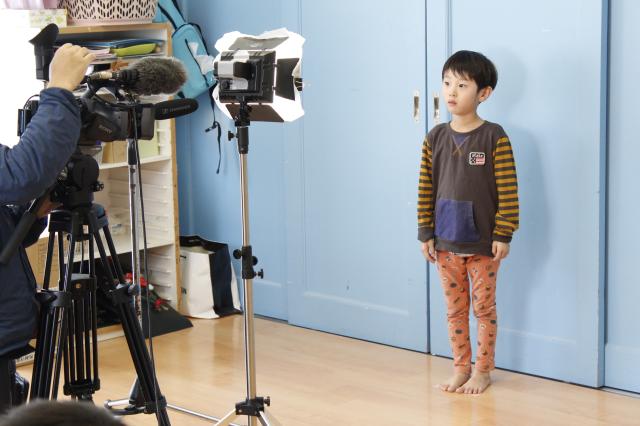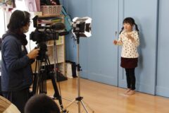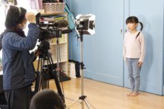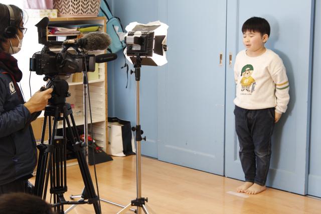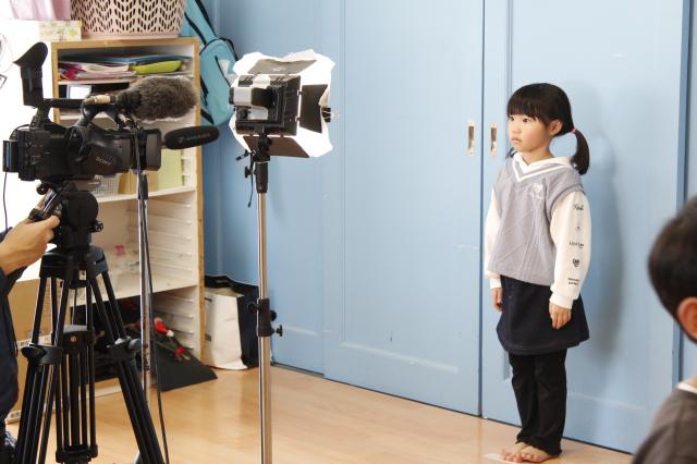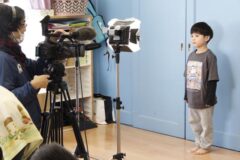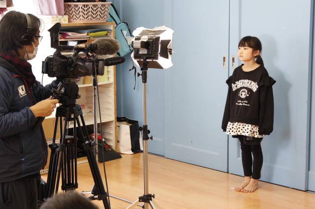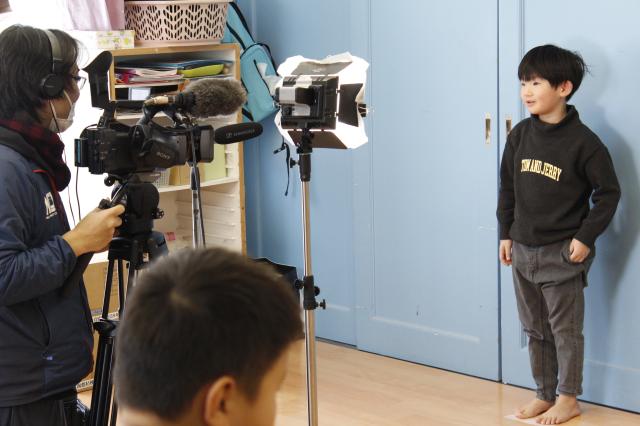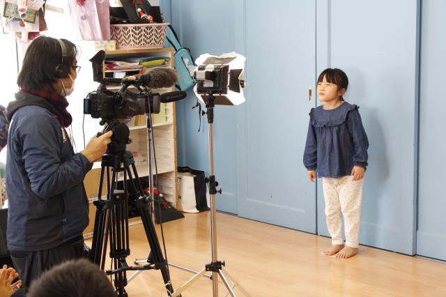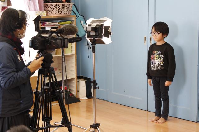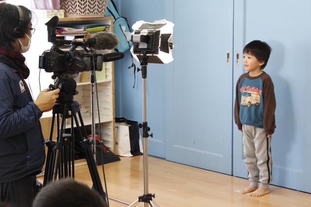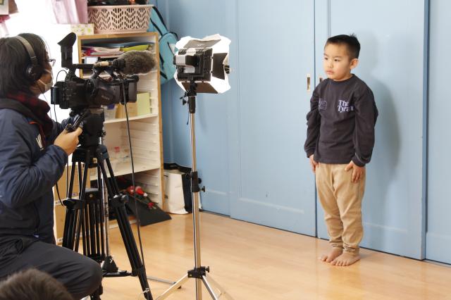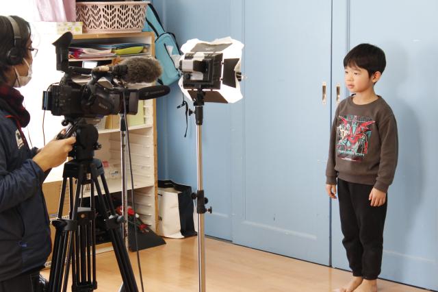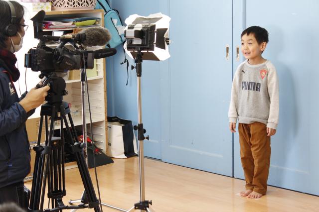 カメラの前に立つと、緊張しながらも上手に言えていました。終わってホッとしたようです。
