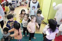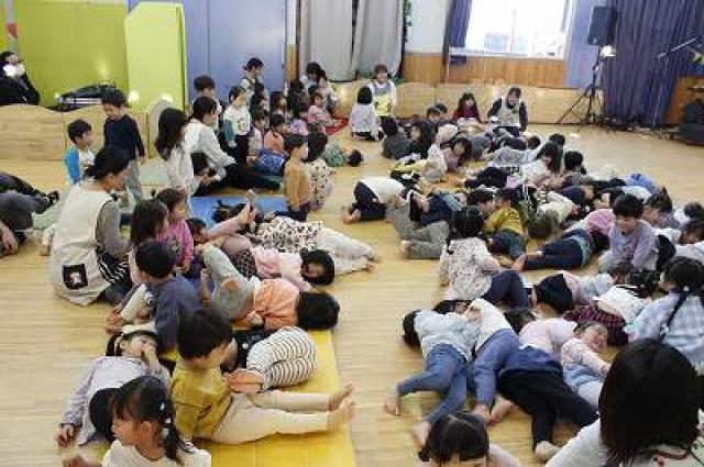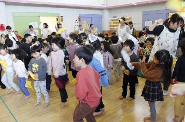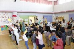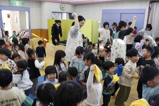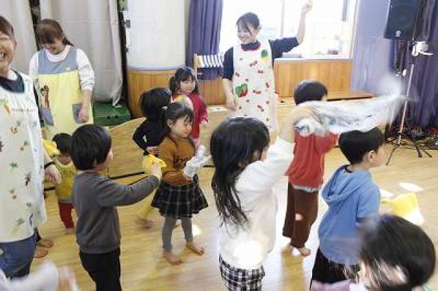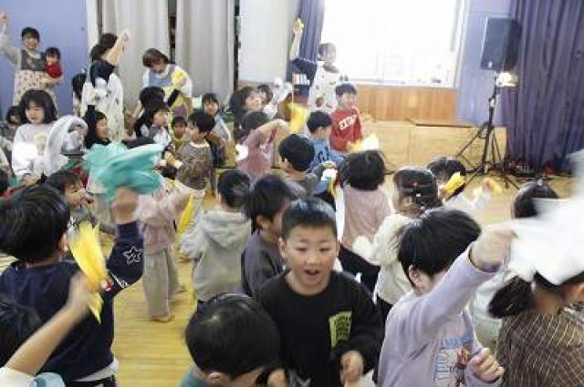 テンポが良いので全クラスで楽しめます!(ちょっと怖がる子は少し離れたところで見ています笑)